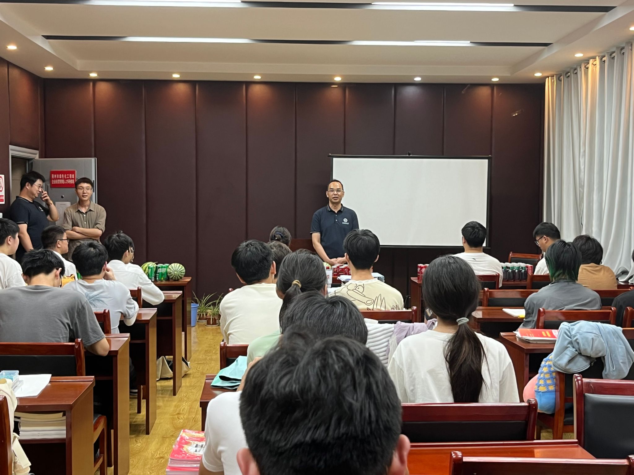 公司党委书记陆新代表学院对暑期留校考研、实习的同学们表示高度赞扬,同时对同学们提出几点鼓励和要求:一是希望大家珍惜时间、坚持不懈。充分利用好暑假时间进行考研复习、实习活动,争取在明年都能取得理想的成绩。二是希望大家注意安全、劳逸结合。暑期高温酷暑,希望大家在紧张复习的同时关注自己身体健康,合理规划复习时间,做到劳逸结合。三是鼓励大家克服困难,勇攀高峰。希望大家克服酷暑炎热和假期学校宿舍升级改造等不便,坚定信心,勇攀人生高峰。