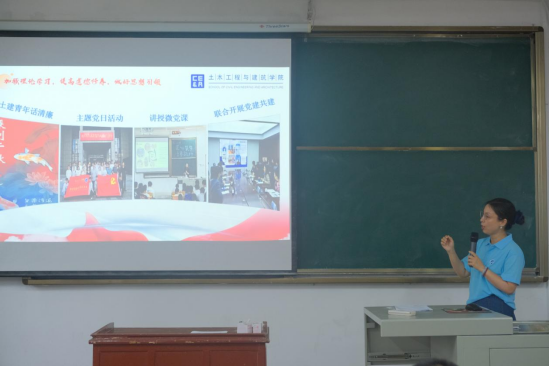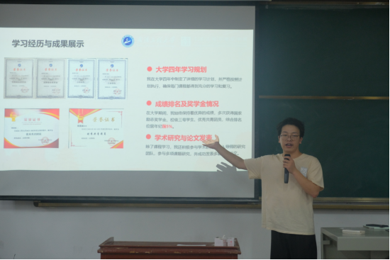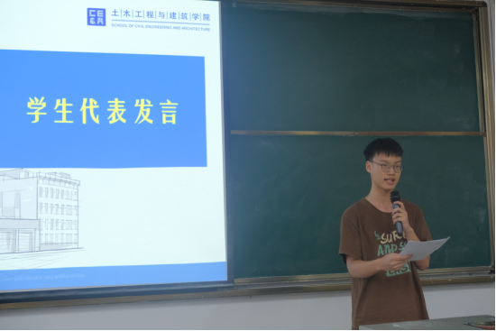 21级员工代表杨南南从学习经历、成果展示、竞赛经历、能力提升、科研经历与探索精神等方面向新生进行了介绍,同时分享自己在广州项目上的实习经历和签约中铁十一局的感受。杨南南通过自己的分享呼吁同学们要珍惜时间,不负韶华,合理做好未来的职业规划。他表示将带着这份热爱和执着继续前行,深耕土木工程行业。