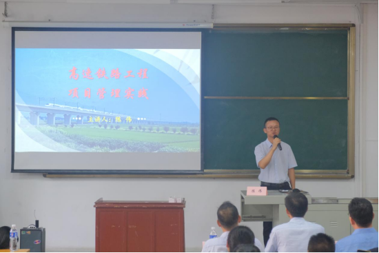 中交二航局四公司副总经理陈伟从我国交通强国战略规划、主要建设成就、管理技术与创新、项目管理实践和未来发展与展望等方面进行了介绍,分享了自己在上海长江大桥、南京长江四桥、沪苏通长江大桥等国家重点工程项目中的工作经历。通过生动的案例和详实的数据,让家长和新生们深刻感受到了土木工程行业在国家发展中的重要作用和广阔前景。鼓励新生们在学习过程中不仅要掌握扎实的理论知识,更要注重培养自己的实践能力和创新精神。
