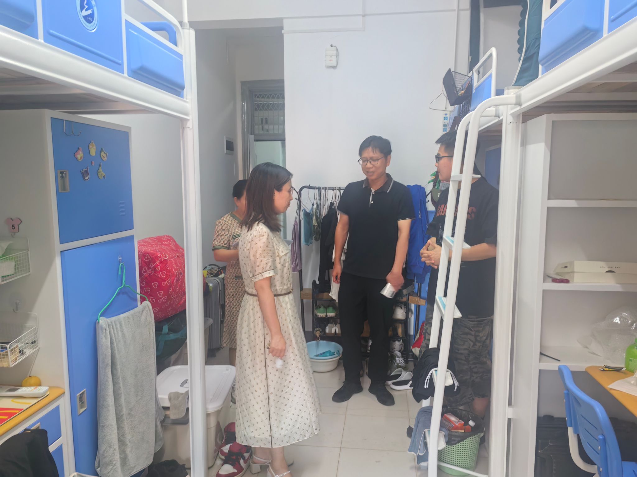 此次联合巡查由党委员工工作部副部长徐凯、公司党委副书记成轶、后勤保障处的老师和全体辅导员共同参与。巡查过程中,老师们深入员工宿舍,仔细检查了宿舍的卫生状况,重点排查了宿舍是否存在违规使用大功率电器等安全隐患。此外,老师们还与同学们进行亲切的交流,了解同学们的在校生活状况及近期学习状态,鼓励同学们保持积极向上的心态,合理规划自己的学习和生活。在巡查过程中,大部分宿舍整体卫生情况良好,同学们能够严格遵守宿舍管理规定。但个别宿舍存在着门口堆放垃圾、养宠物、电线插座摆放杂乱以及使用大功率电器等问题,老师们进行了严肃的教育和批评,并要求立即进行整改。