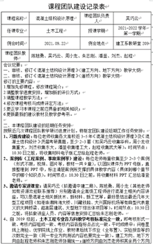 这学期《混凝土结构设计原理》教学团队进一步推进教学改革,团队定期召开研讨例会,围绕教学大纲修订、员工学业预警等研讨教学方法,丰富教学内容,赵程老师跟随课程团队负责人吴巧云老师负责教学研讨例会的组织、会议记录的整理和会议精神的督促落实。